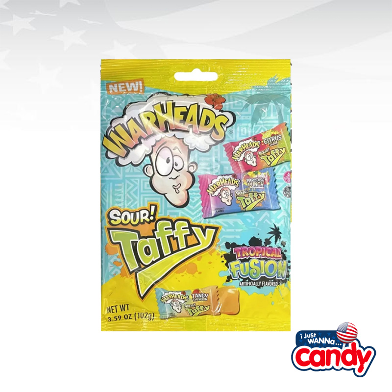 Introducing Warheads Sour Taffy Tropical Fusion Peg Bag, a tantalizing blend of tropical flavours that will transport your taste buds to a sun-soaked paradise. Experience the intense sourness that Warheads is known for, followed by a satisfyingly chewy texture. After the initial burst of sourness, delight in the perfectly balanced sweetness that lingers on your palate. The vibrant packaging and convenient, portable size make this treat perfect for on-the-go enjoyment or for sharing with friends and family. Indulge in moments of fun and create lasting memories with this shareable delight.